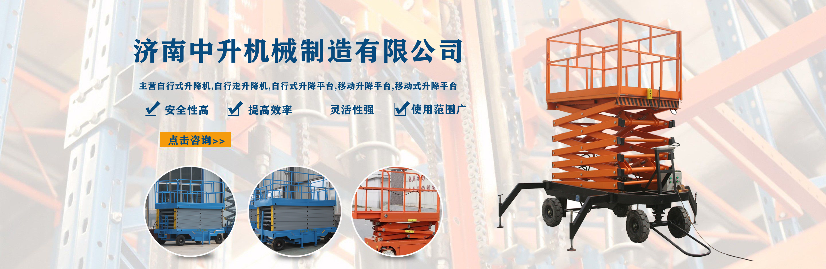 濟南中升機械制造有限公司主營自行式升降機,自行走升降機,自行式升降平臺,移動升降平臺,移動式升降平臺等產品,產品廣泛用于廠房維護、工業安裝、設備檢修、物業管理、倉庫、航空、機場、港口、車站、加油站、體育場、展覽館等多種行業和場所, 公司設備精良、工藝合理、檢測手段齊全,技術力量充足,公司創立伊始即本著“專注、專心”的經營理念,依托技術團隊優勢和設備硬件保障,全力打造良心的升降平臺企業。 我公司始終以“品質為本,服務至上”作為企業宗旨。只要你訂購了我公司的產品,無論你身處何方,我們都會及時派出技術人員為你服務!...